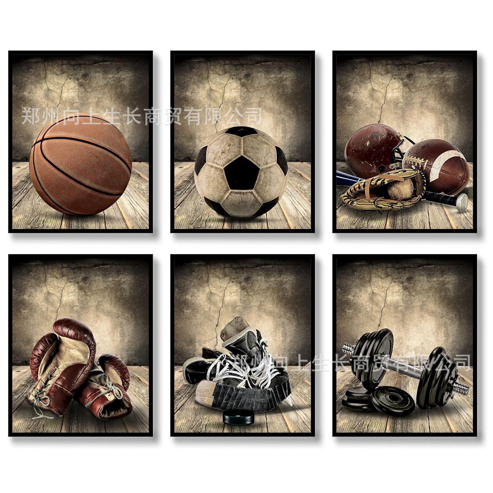 芸術画アマゾンクロスボーダー新品外国貿易サッカー野球バスケットボールレトロ木目床装飾画芯寝室
