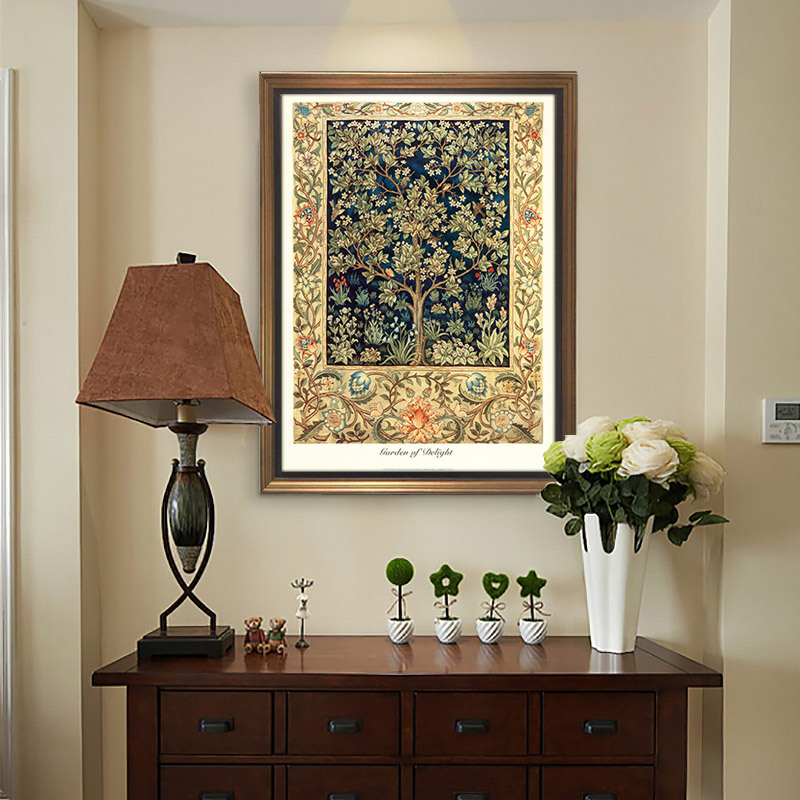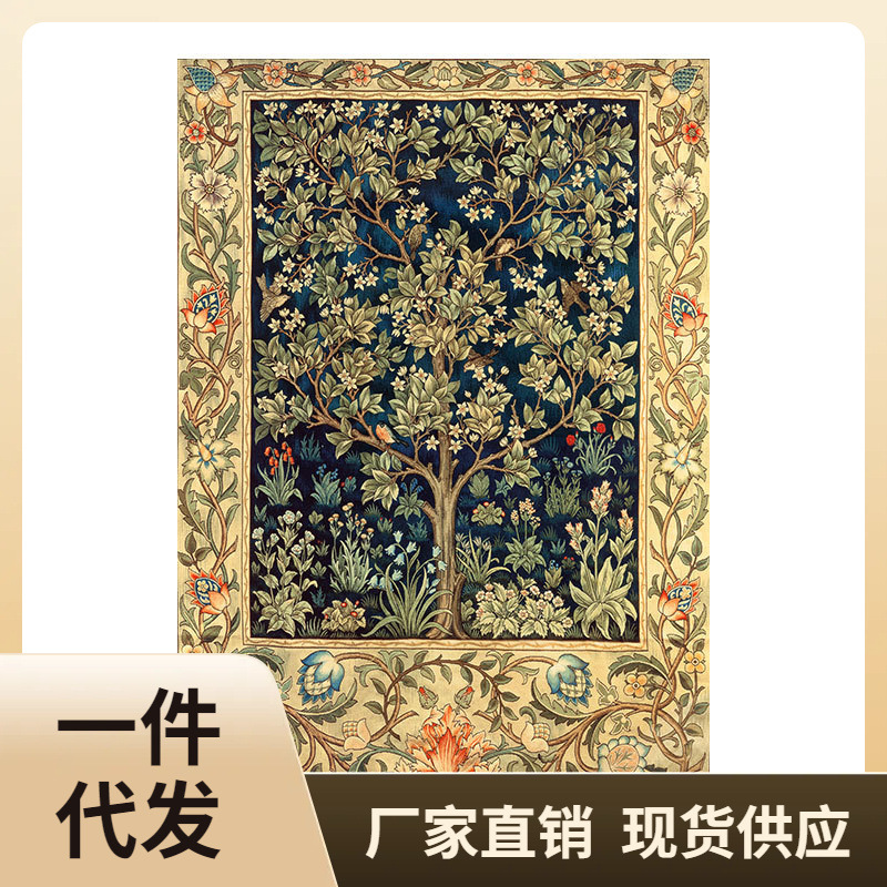 ✅ モリス生命の樹 幸福の樹 財運の樹 縦型 高画質印刷 厚布絵芯 タペストリー 精巧な装飾