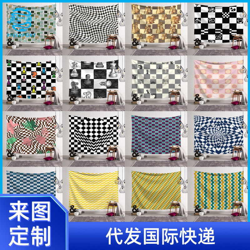 北欧工業風バー布芸掛け絵壁掛け壁装飾画タペストリー来図logo代件クロスボーダー