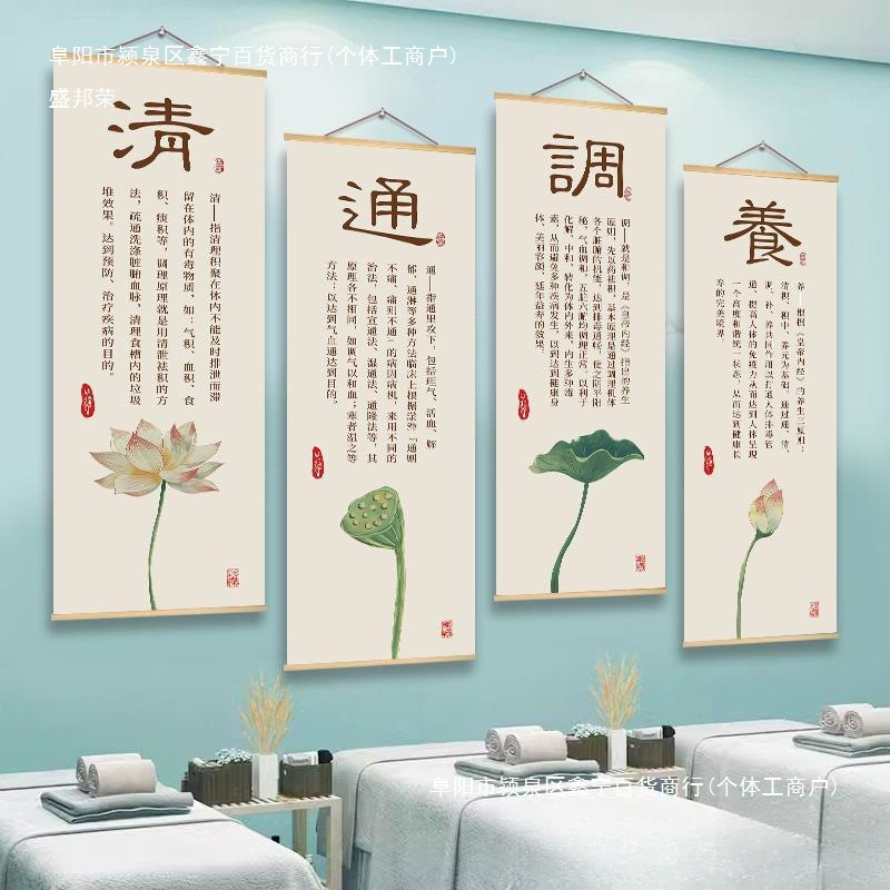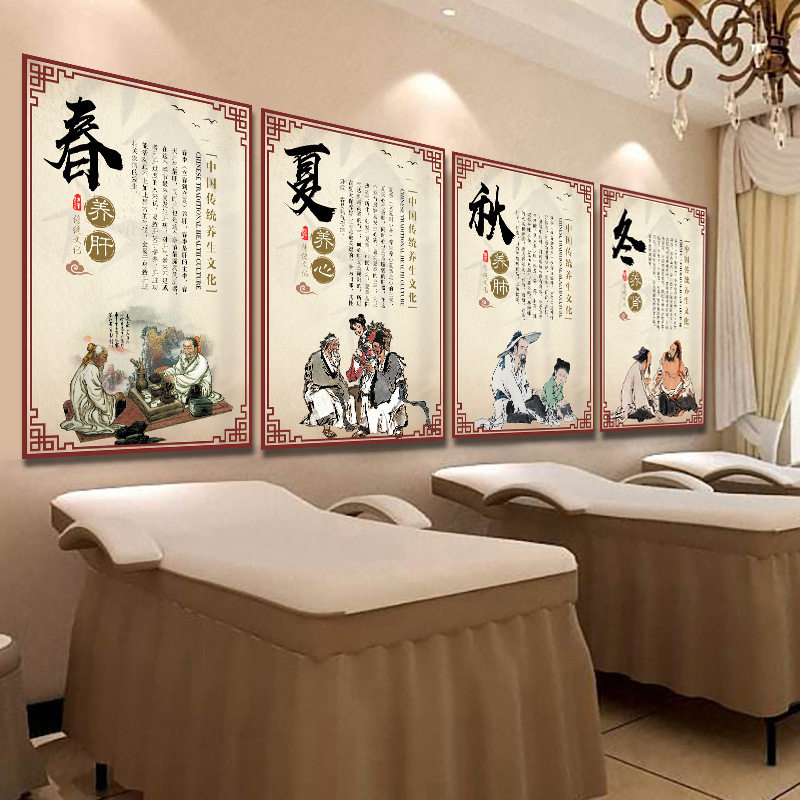 伝統的な中国医学健康センター吊り布理学療法ショップ四季健康文化プロモーションポスター美容室背景壁装飾絵画