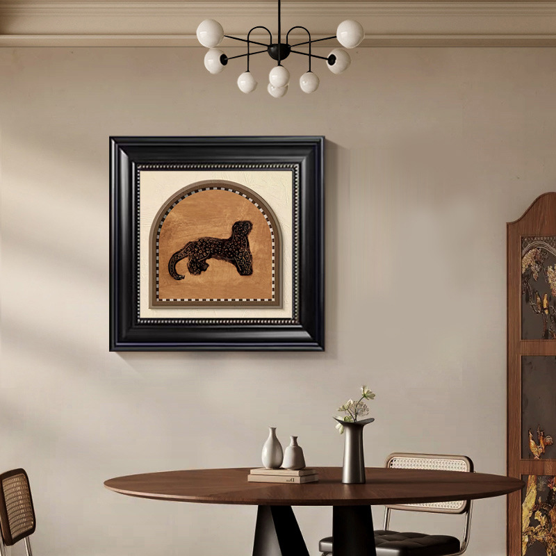 フランスの中世のリビングルームの吊り絵、レトロなニッチアート、黒の装飾画、ハイエンドの玄関の立体壁画