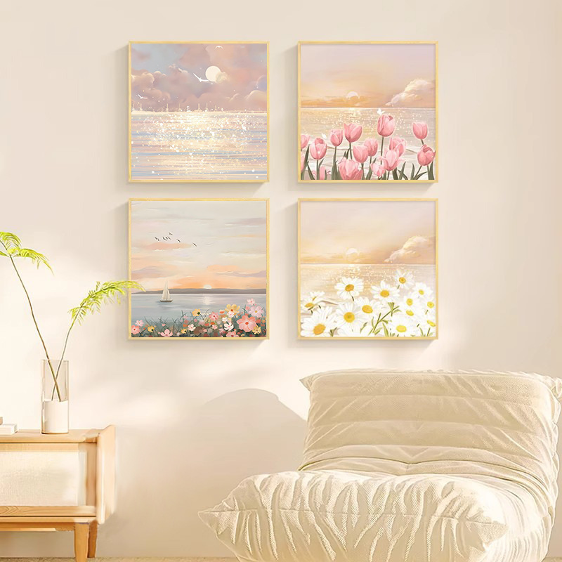 暖かいクリーム風ins壁画装飾画客間ソファー背景壁掛け画多連画正方形装飾画