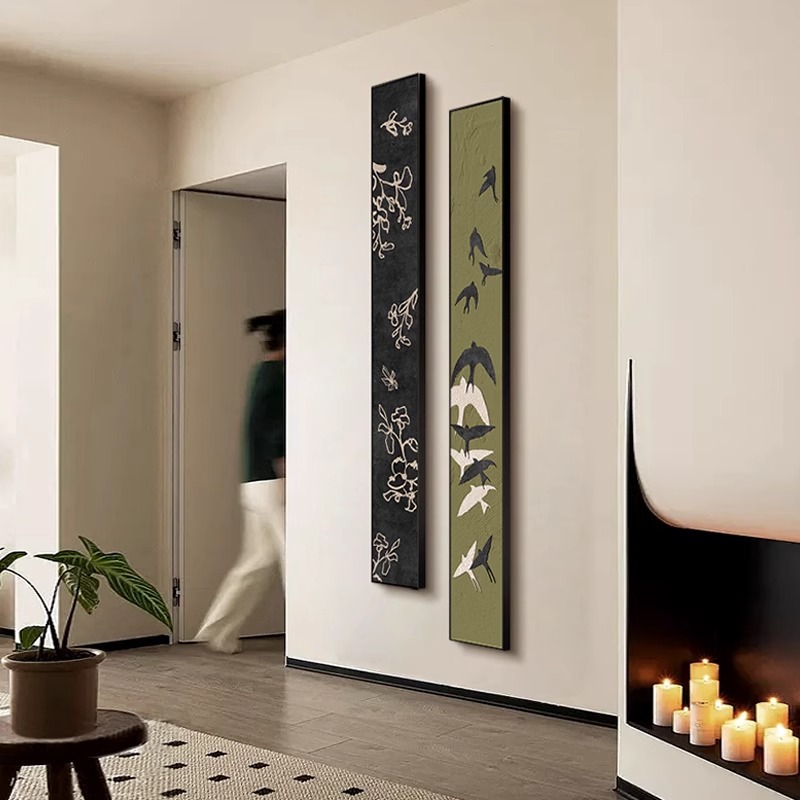 リビングダイニング玄関装飾画インスタ風緑植物花鳥寝室縦版掛け絵背景壁壁画