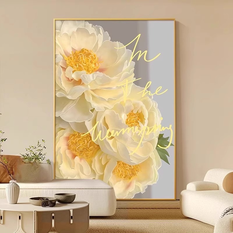 クリームスタイルのリビングルーム装飾絵画インベッドルーム絵画牡丹の花床絵画ソファ背景壁画玄関吊り絵画