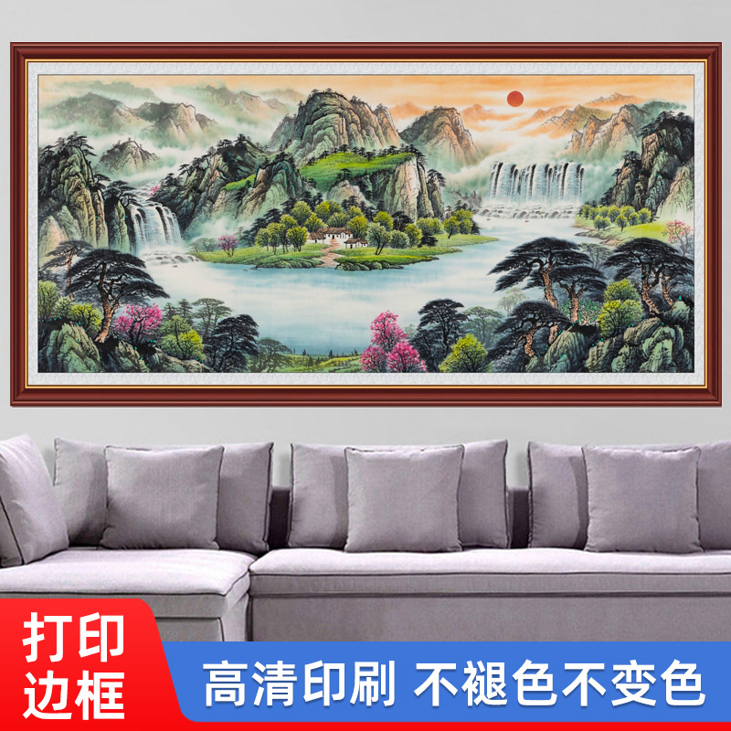 日の出と宝の盆地風景画オフィスバック山風水富の収集新しいリビングルーム装飾絵画自己粘着絵画