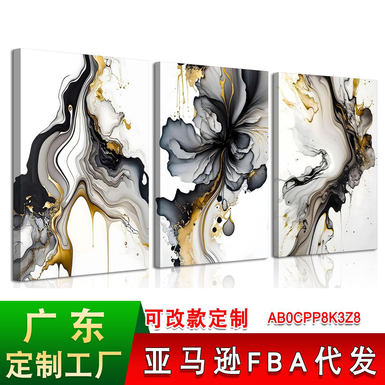 アマゾン金色大理石流体レストラン掛け絵キャンバスポスター黒抽象客間装飾画