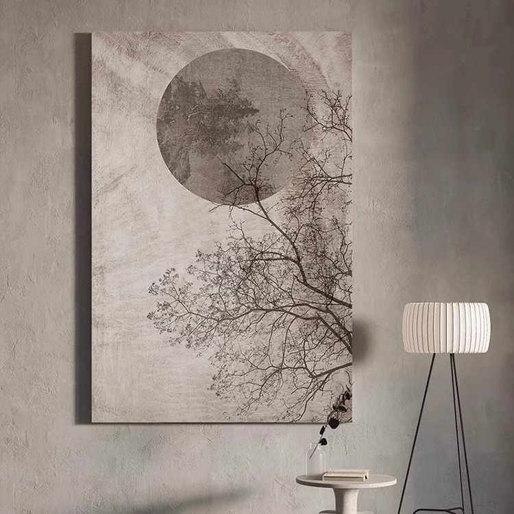 寂客間大サイズ掛け画新中国式原木風玄関ホテル民宿寝室ベッドサイド装飾画壁画