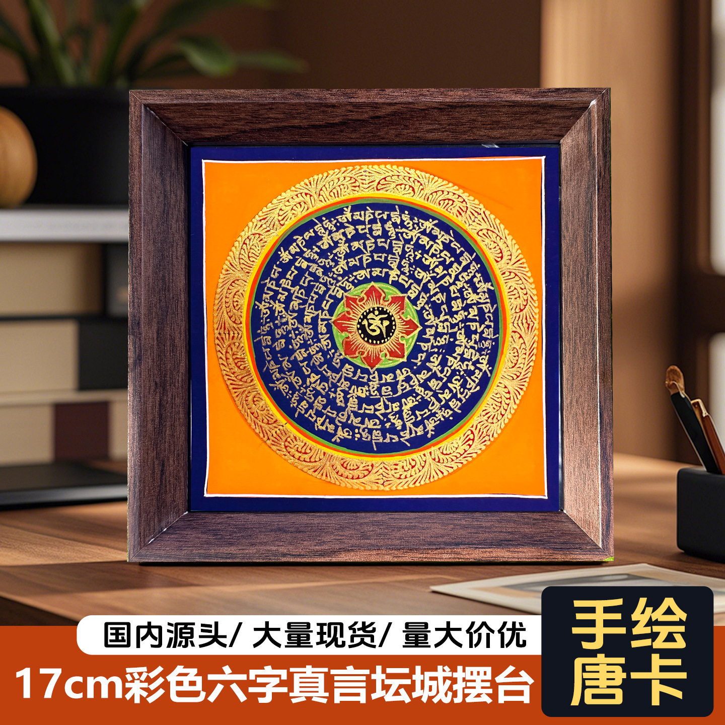 17cmテーブルディスプレイ手描きタンカ六字マントラタングラネパール観音マントラ仏陀装飾画テーブルディスプレイ