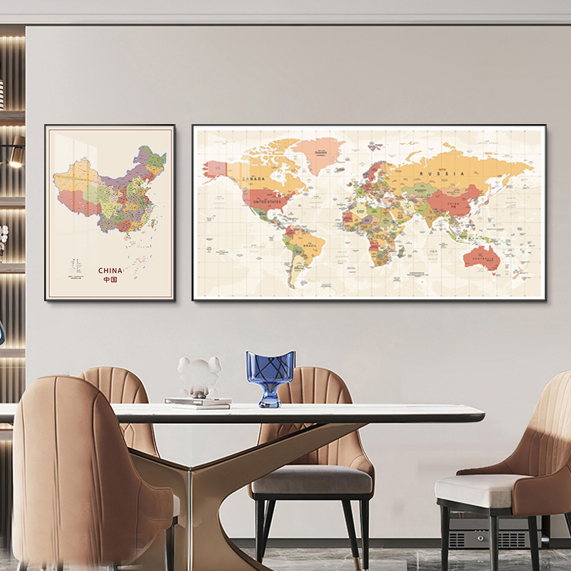 世界地図掛け絵中英語客間ソファー背景壁画オフィス壁画書斎壁画中国地図