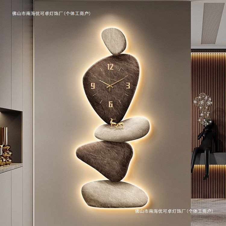 玄関絵画、装飾画、時計付き石絵、光るランプ絵、玄関絵、掛け絵、わびさび風壁画