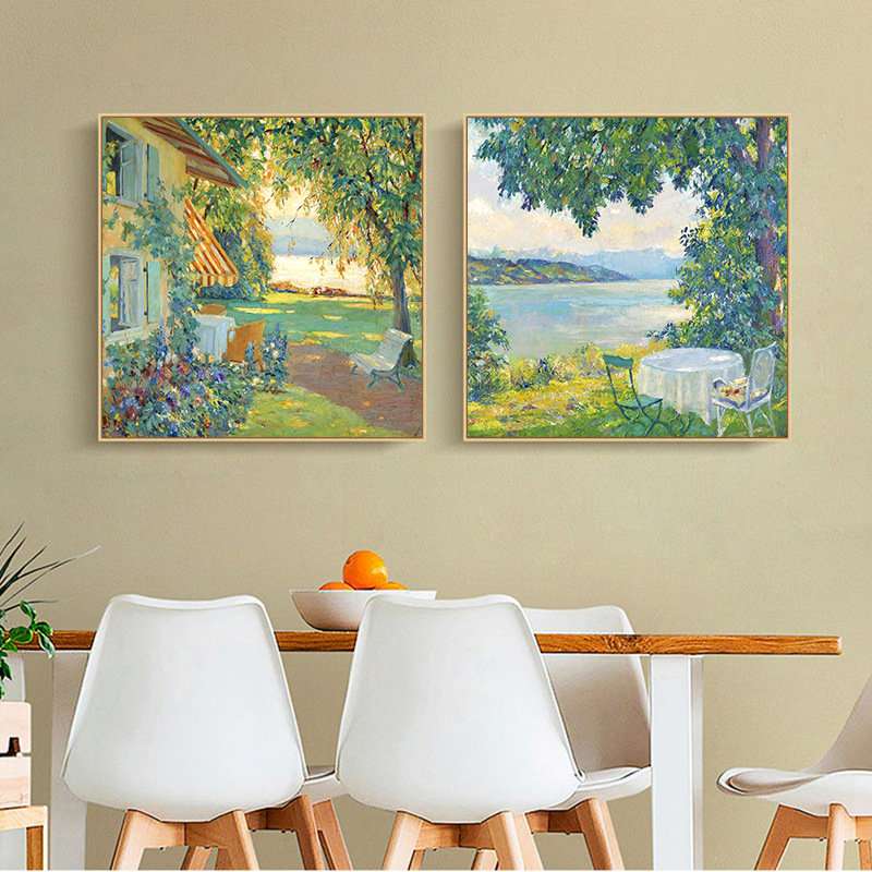 フレンチウィンドウ風景装飾画北欧インベッドサイド絵画リビングルーム寝室玄関壁掛け絵画プリント絵画コア
