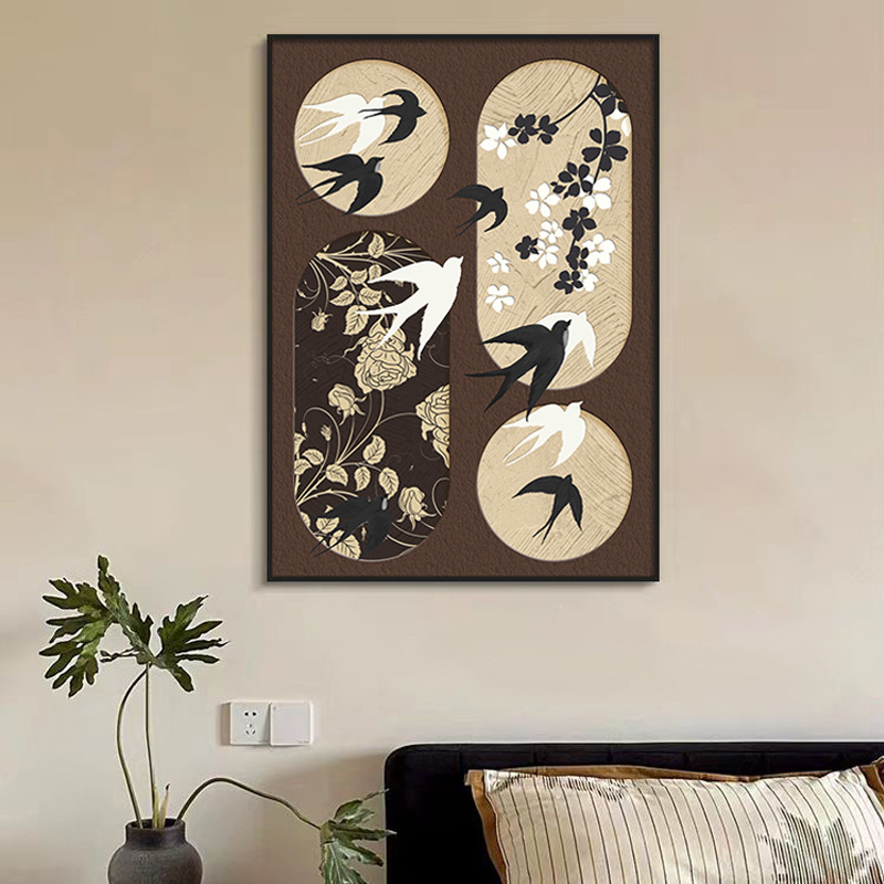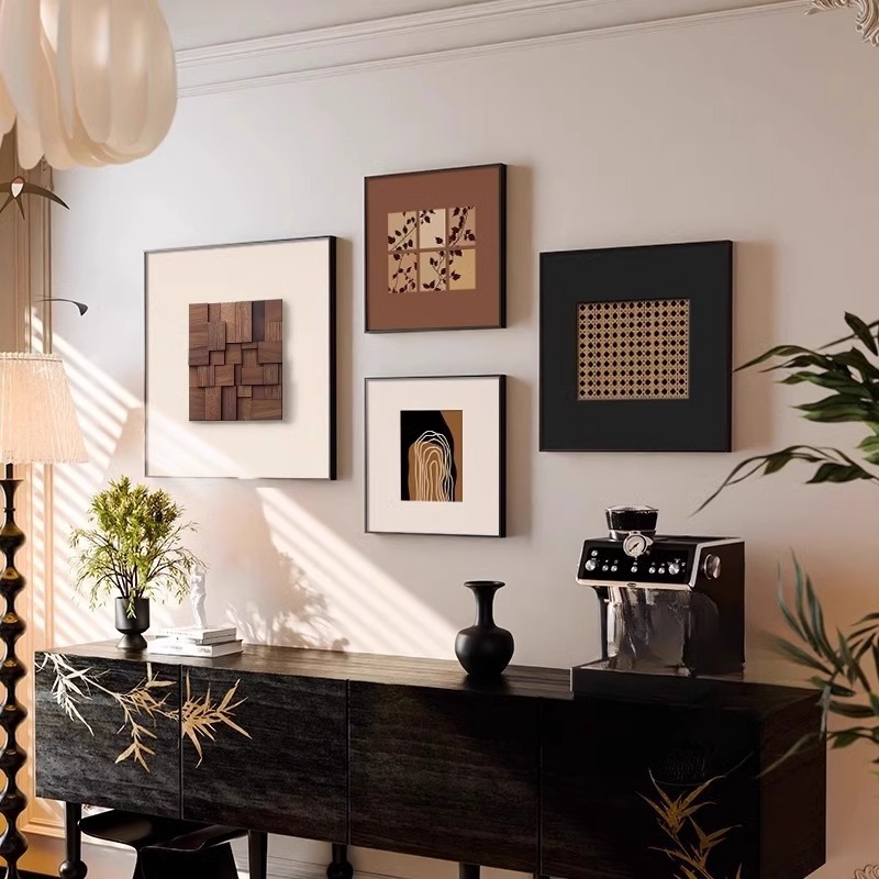 フランス中世様式のリビングルームソファ背景壁装飾絵画、高級4連壁画、イタリアンミニマリストレストラン吊り下げ絵画