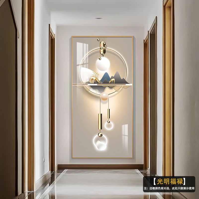 流水生財玄関装飾画ledランプ入戸廊下通路掛け画新中国式高級感発光壁画