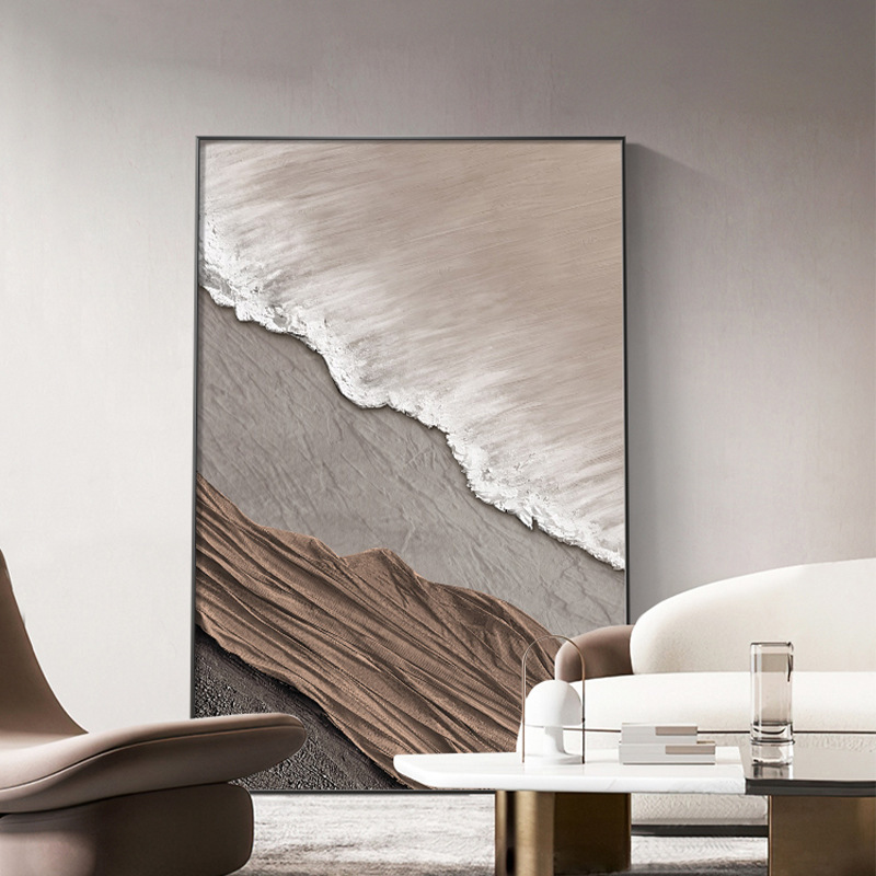 シンプルモダン北欧モランディ暖色系抽象幾何学線クリーム色装飾画ホテルマンション掛け画