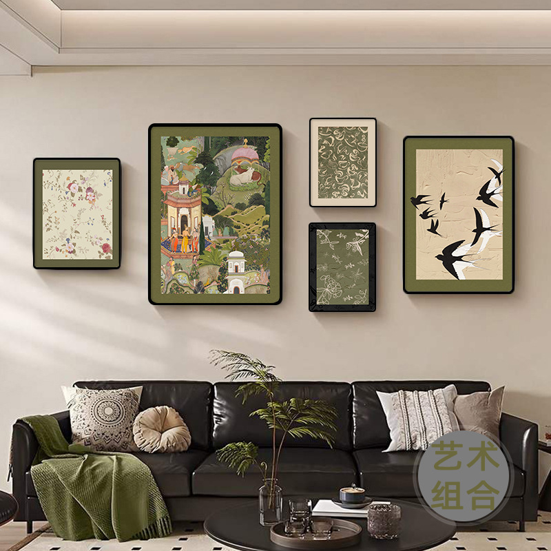 中古風客間装飾画レトロフランス風ソファー背景壁壁画芸術セット高級感結晶磁器掛け画