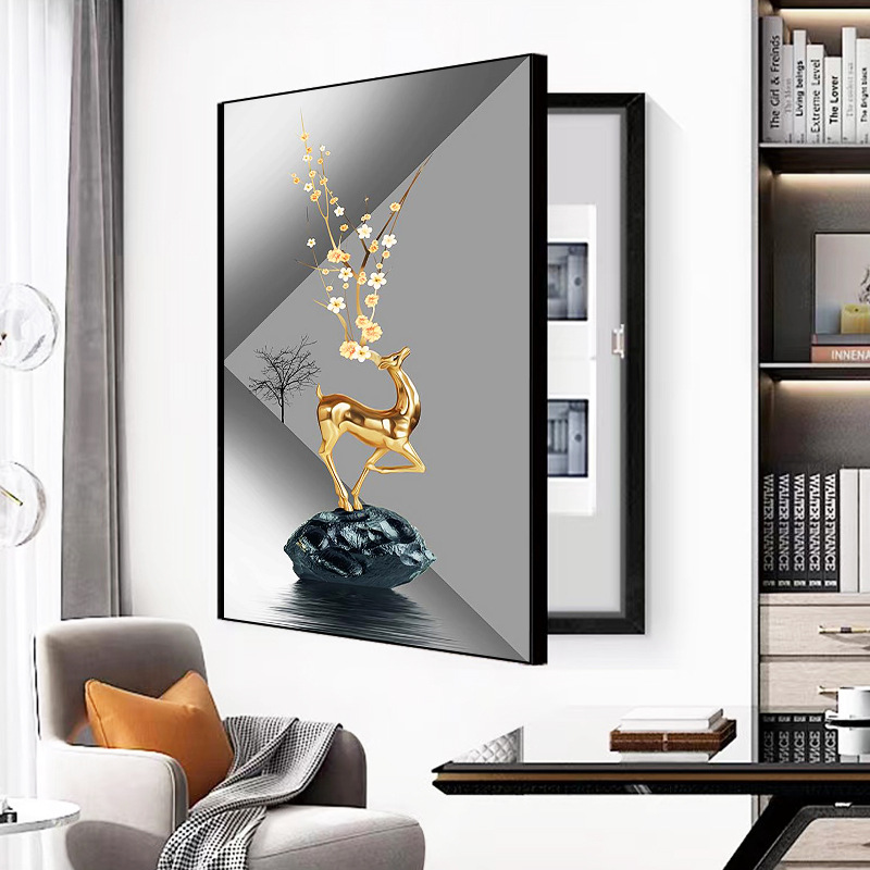 玄関装飾絵画ヘラジカハイエンド廊下モダンシンプル通路ドア玄関照明絵画吊り絵画ランプ絵画