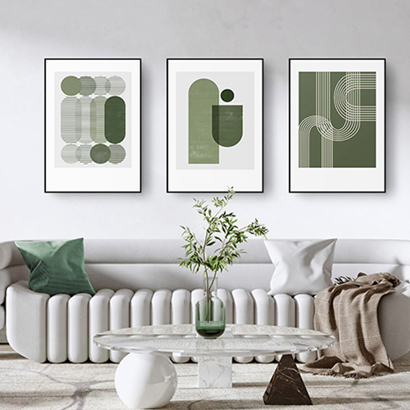 現代のシンプルなリビングルームの玄関装飾画緑の抽象的な幾何学的背景壁が大幅に着地した縦型の掛け絵