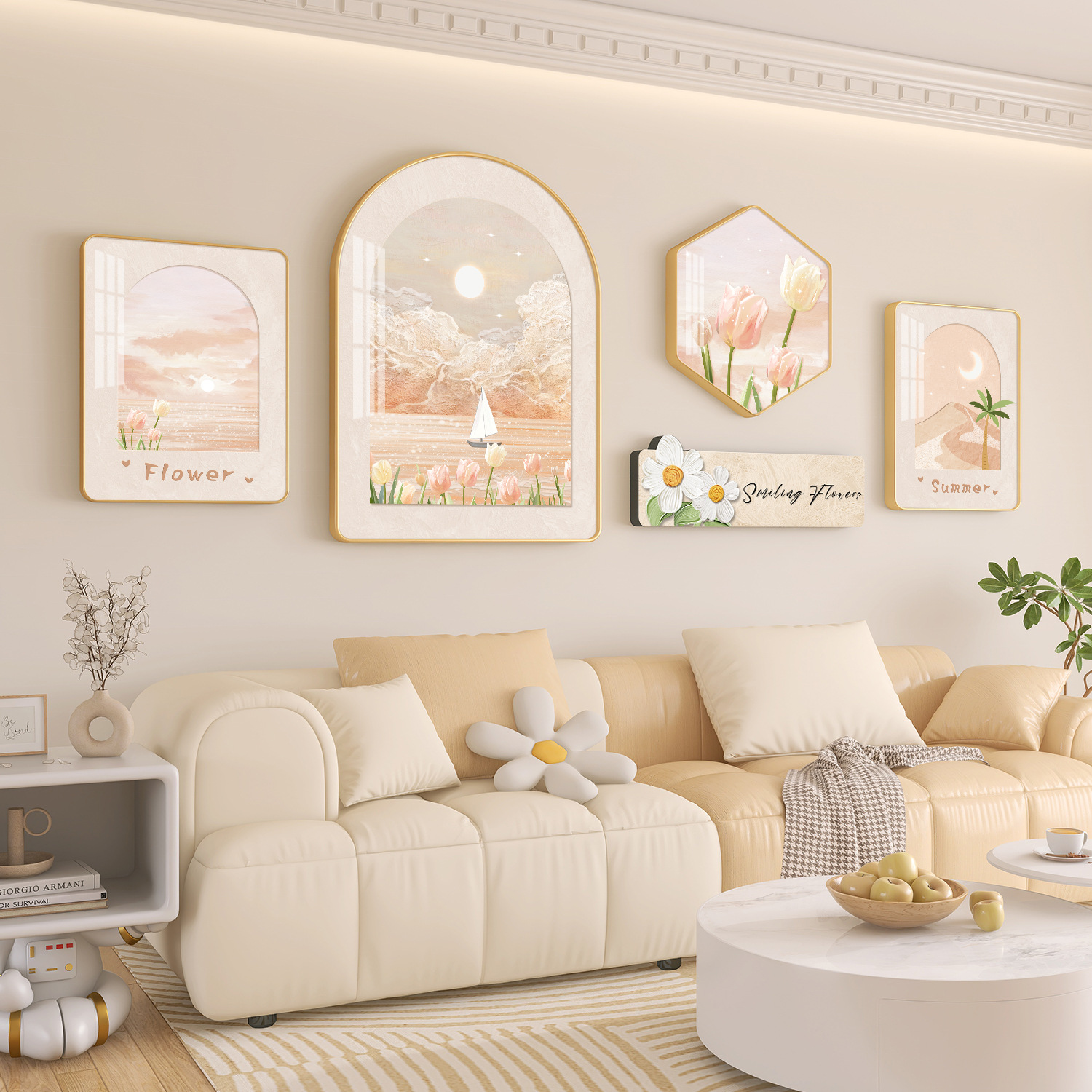 クリーム色のリビングルーム装飾絵画、モダンなソファの背景壁掛け絵画、小さな新鮮でモダンなシンプルな壁掛け絵画の組み合わせ