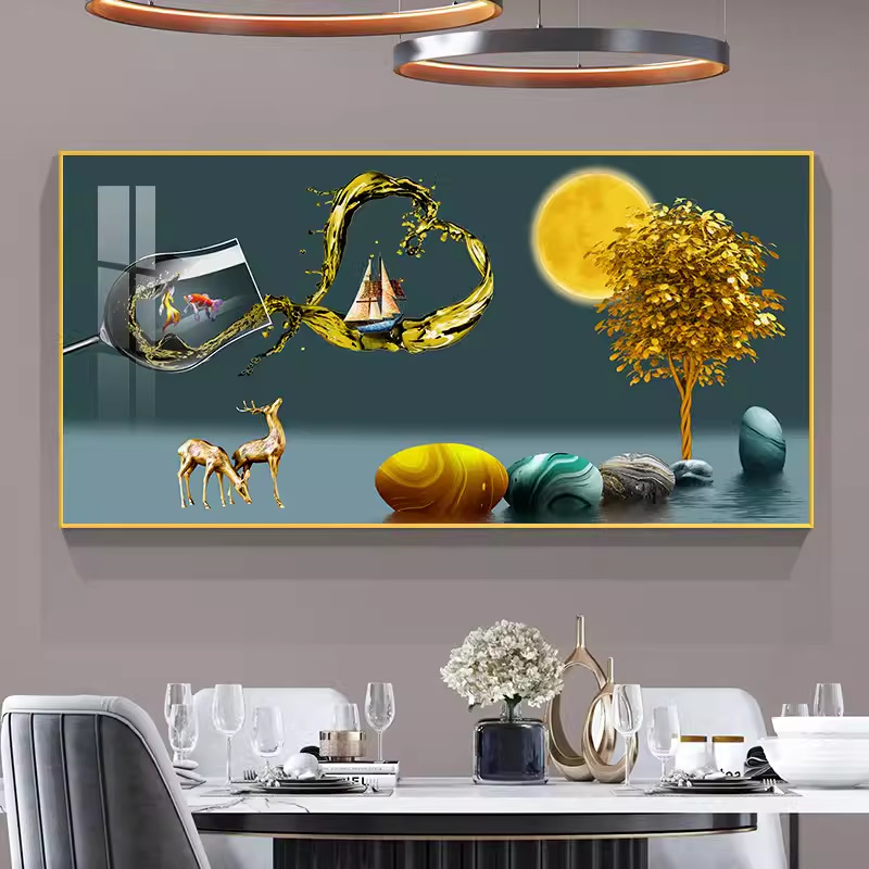 現代のシンプルなレストランの装飾画の軽い豪華な杯の食卓の背景の壁は高級な食事室の壁を掛けて台所の壁画を描きます。