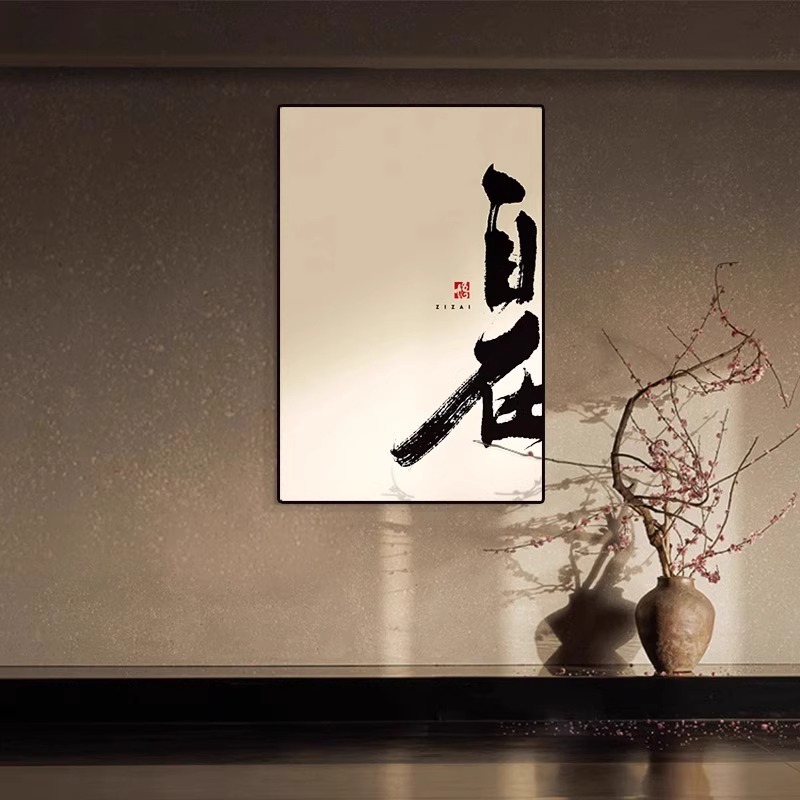 新しいインスタイルの絵画、クリーム系のリビングルーム、民宿、客室、ミニマルな油絵、木製掛け軸装飾画、玄関