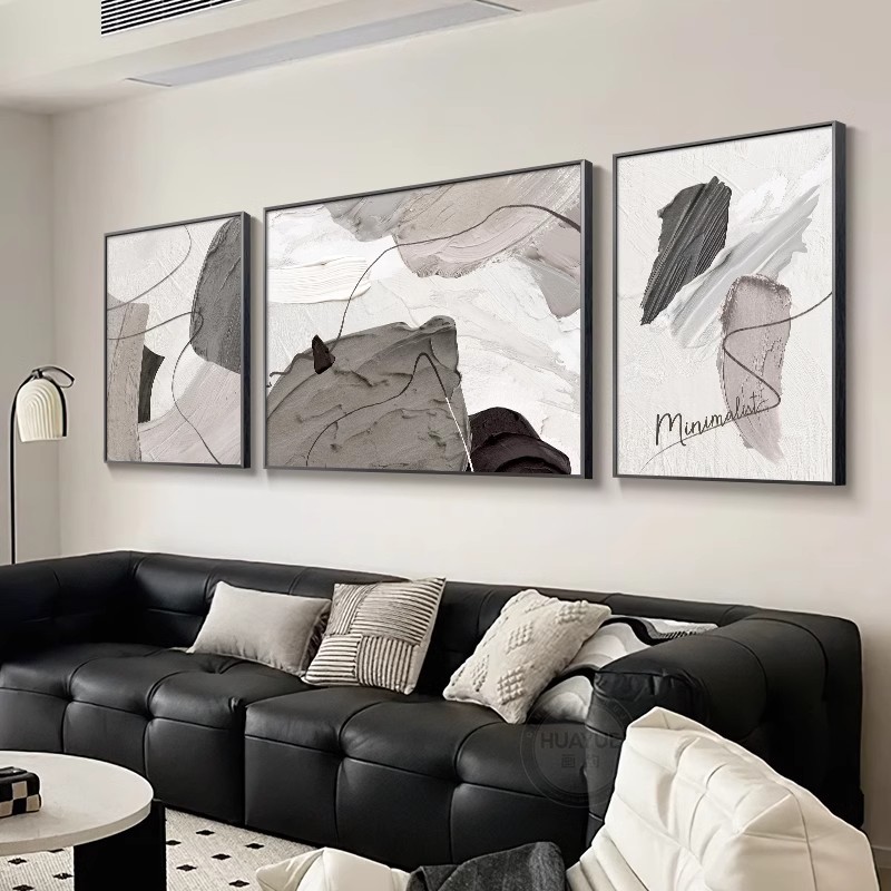 モダンなシンプルなリビングルームの装飾画白黒抽象的なソファの背景の壁面の壁画の高級感のある大気の三連掛け絵