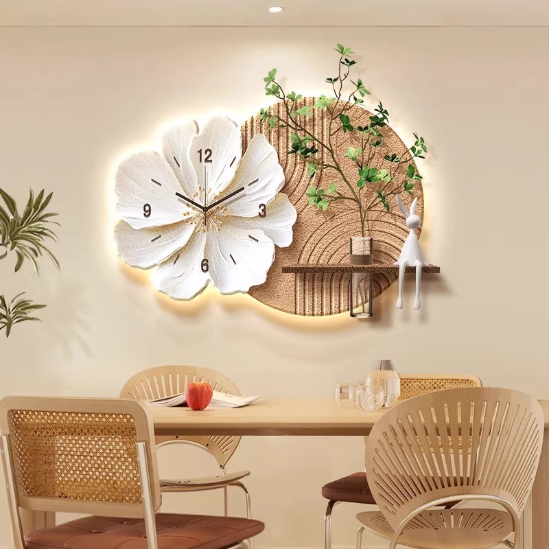 水耕栽培緑植物レストラン装飾絵画クリエイティブ壁時計リビングルームのテレビの背景壁掛け絵画 2025 新しい立体時計