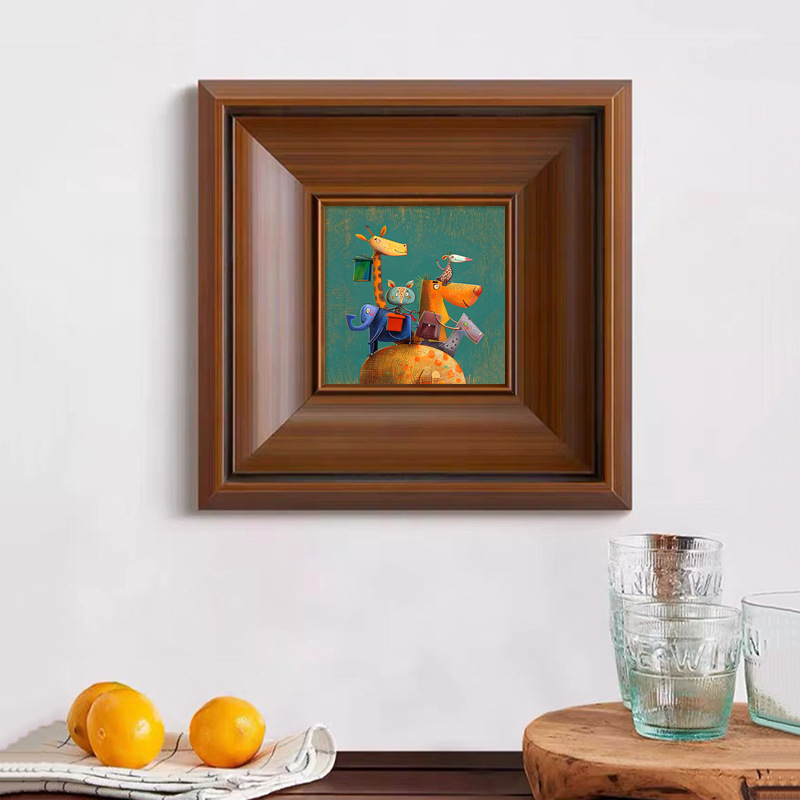 北欧の正方形の漫画の動物のリビングルームの装飾絵画、玄関ホールの絵画、ハイエンドの通路絵画、レストランの吊り下げ絵画、クリスタル磁器絵画