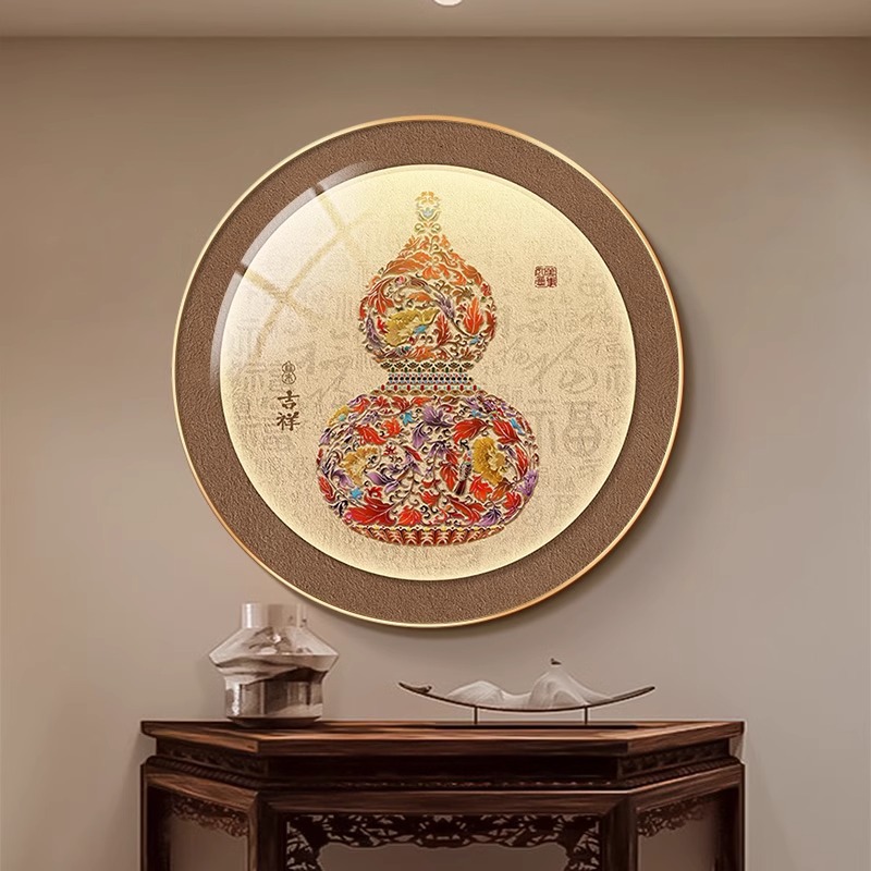 Fulu ハウスラウンド吊り絵画新しい中国風のドアリビングルーム玄関装飾絵画良い意味ホテルレストラン壁画