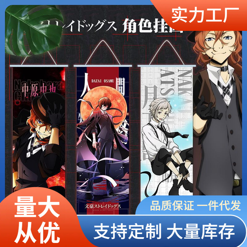 文豪野犬アニメテーマ掛け画太宰治中原中也中島敦絹布ハイビジョンポスター壁画