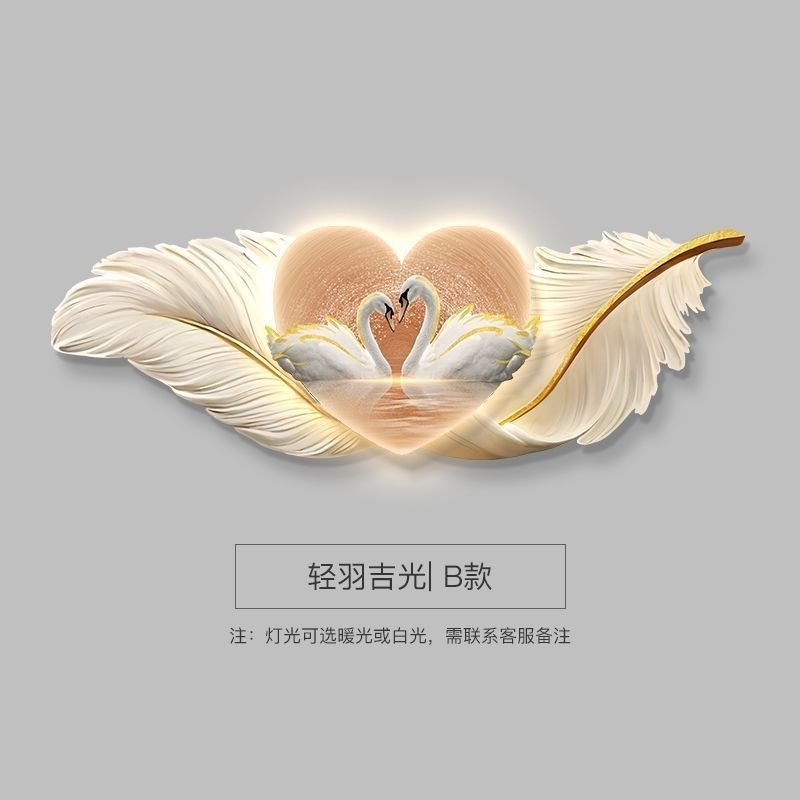 現代の軽い豪華な寝室の装飾画の高級な白鳥のベッドの頭の壁面は羽毛の立体の客間の壁を掛けて明かりの絵を飾ります。