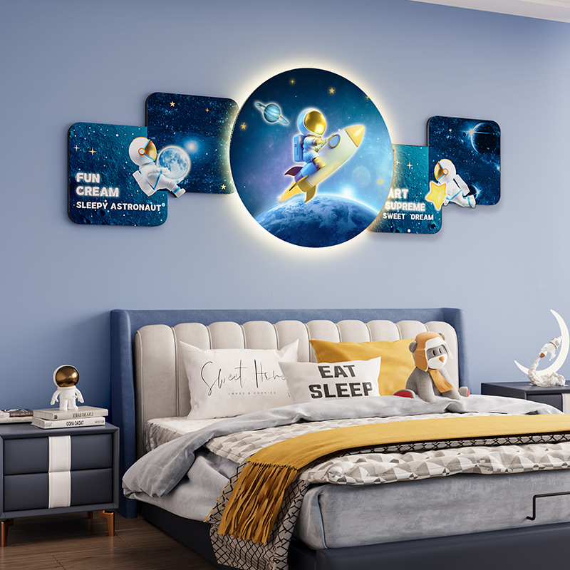 新しい子供の部屋の漫画の発光は絵の宇宙飛行士の王女の部屋の壁面を掛けて男の子の女の子の寝室のベッドの上で絵を掛けます。