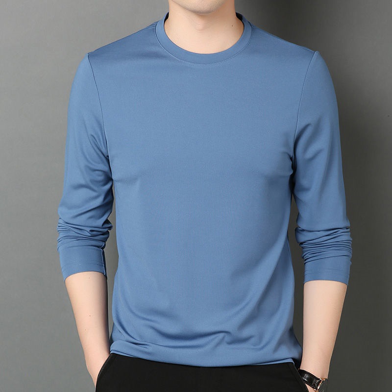 マルベリーアイスシルク Tシャツメンズ長袖薄手春秋スウェットシャツ下着夏速乾ラウンドネック氷感通気性ボトリングシャツ