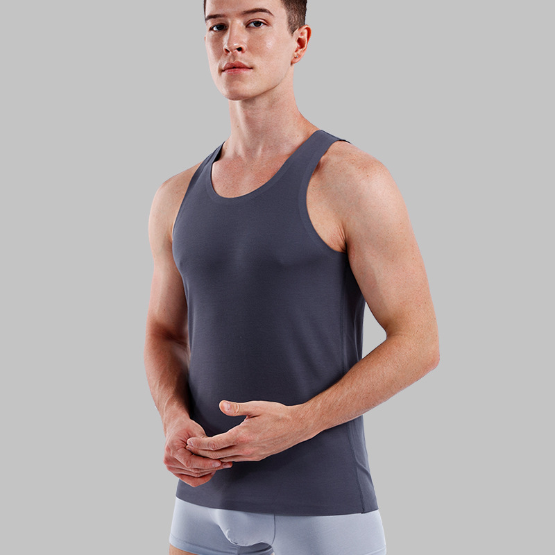 60番手レンチングモーダル春夏メンズハードルベストフィットネススポーツアイスシルクニットシームレスメンズベースレイヤー
