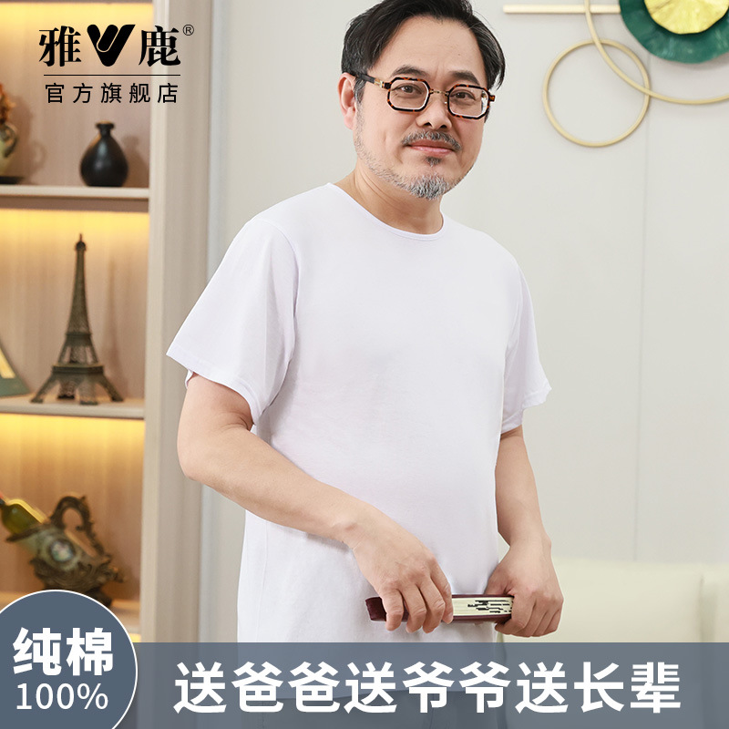 Yalu 純綿半袖メンズ 2025 新作夏ルーズラウンドネック半袖 Tシャツトップス中高年大きいサイズ