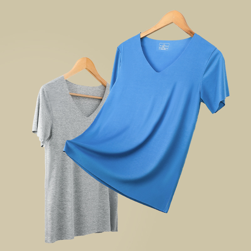 夏のメンズ無地半袖レンチングモーダルカジュアルトップスVネックシルケットコットンTシャツはファッションとして着用できます