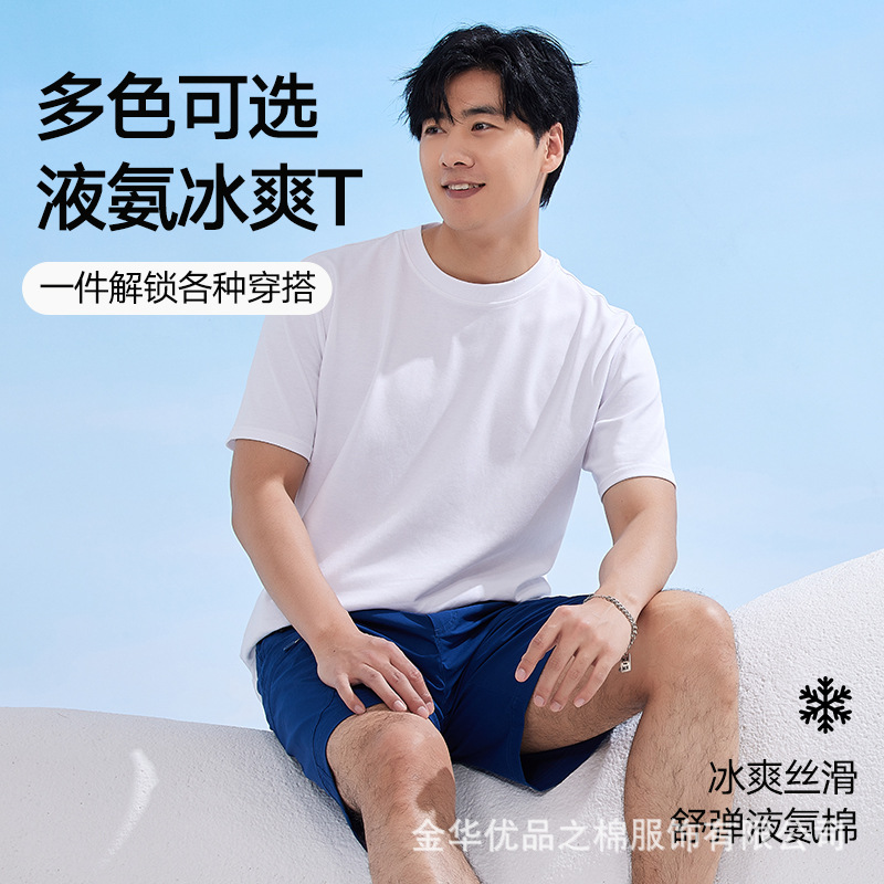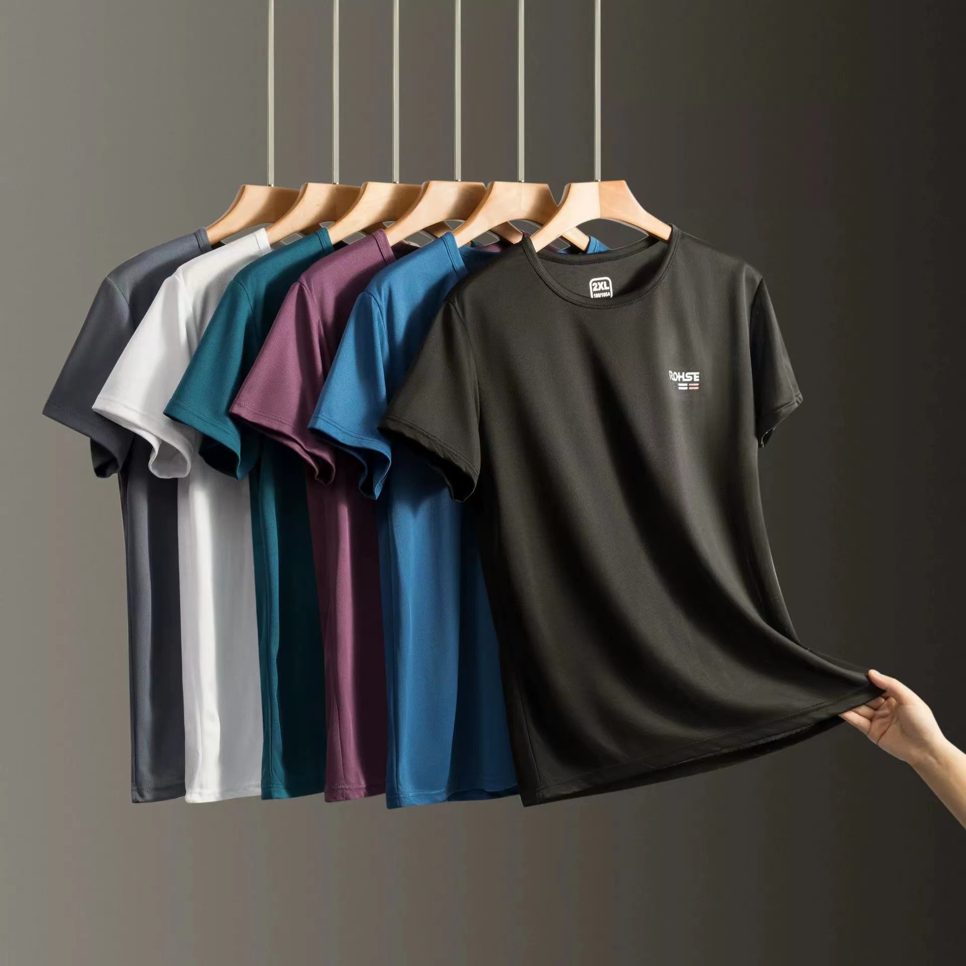 2025 夏の Tシャツメンズファッションスポーツルーズアイスシルク速乾性半袖弾性底卸売と小売