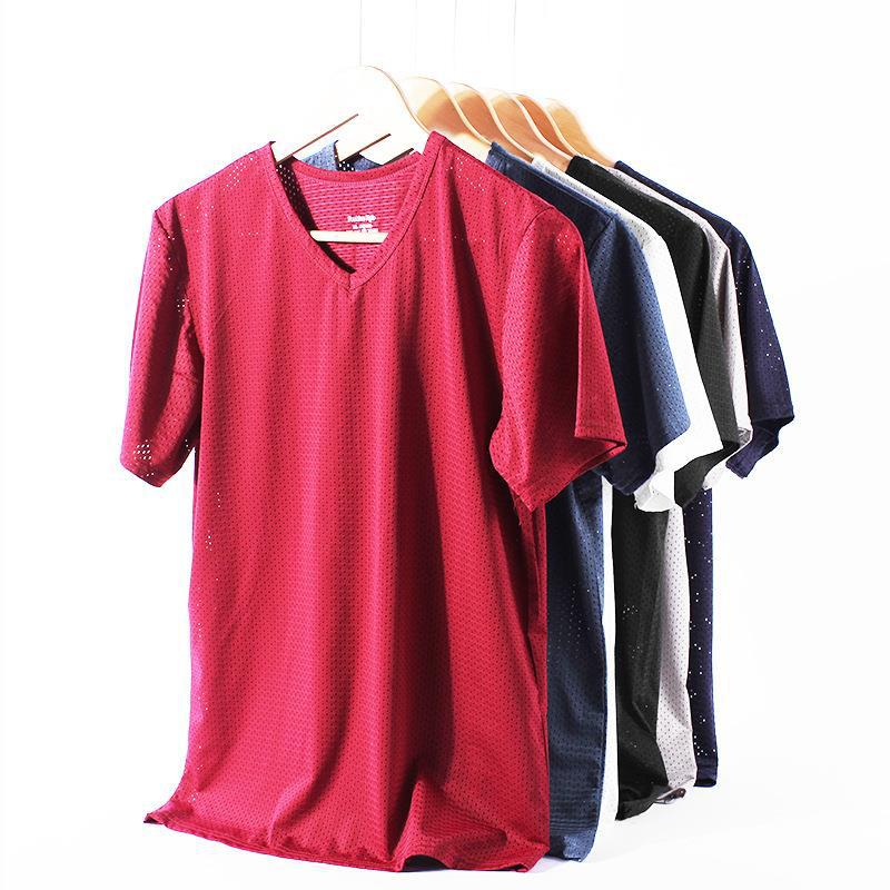 氷糸メッシュtシャツ男性メッシュ通気性ネット糸抜き滑り材夏速乾ゆるい大サイズvネック潮メッシュ半袖