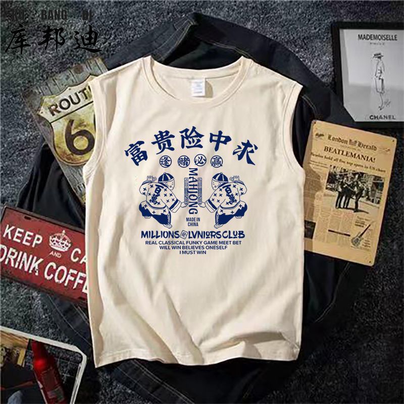 ノースリーブベストメンズ夏のスポーツベスト服ベースメンズレトロ半袖Tシャツ12
