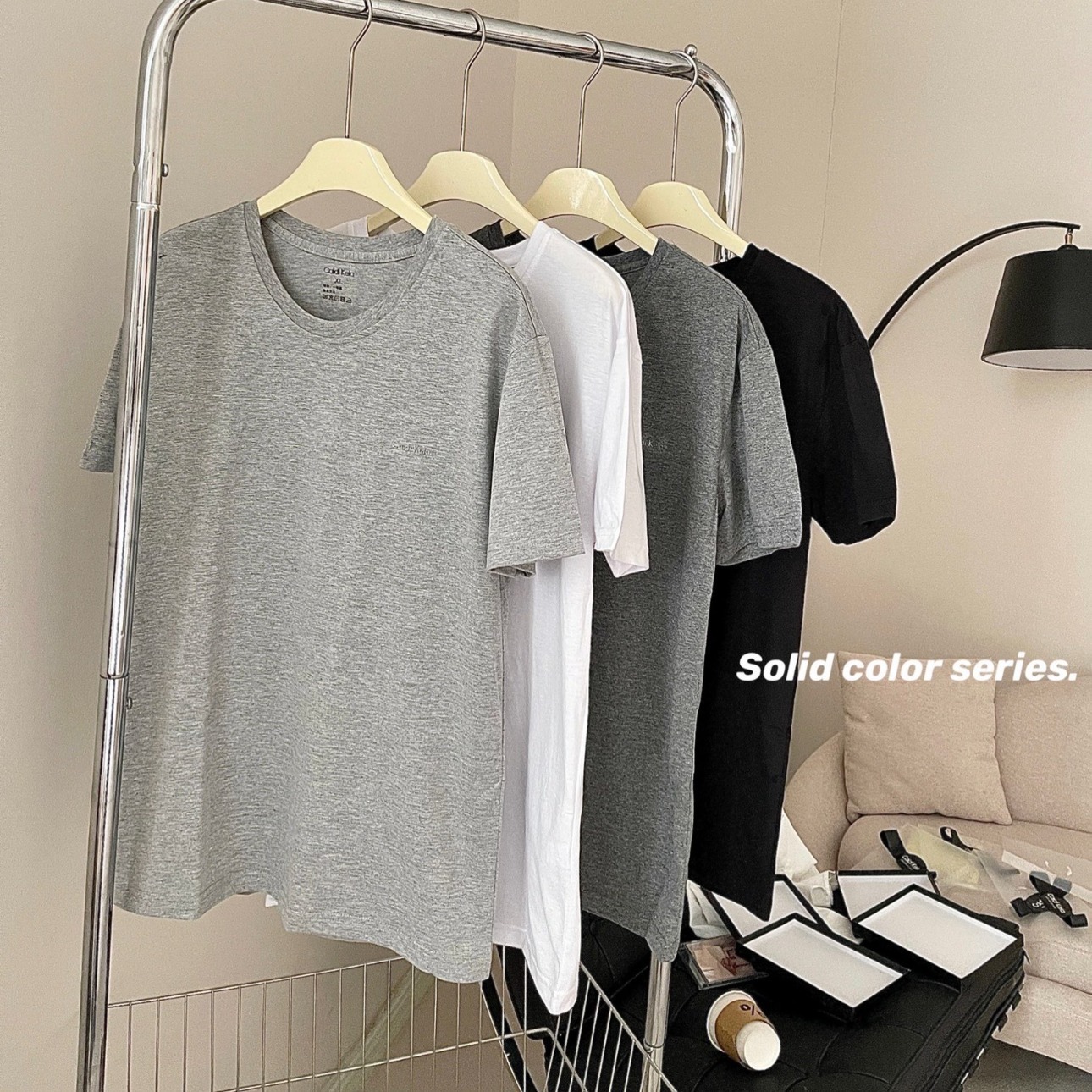 男性純綿レカ半半袖丸首tシャツボトムシャツ夏カジュアル純色ファッション外着インナー若者