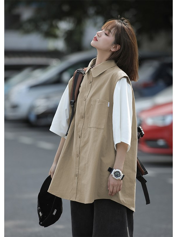 夏日本のレトロな偽ツーピース右肩半袖Tシャツ男の子と女の子用ルーズシャツ半袖トップ日焼け止めカーディガン