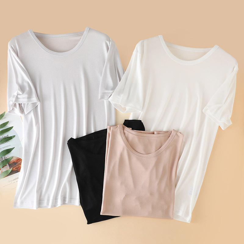 100 マルベリーシルクメンズラウンドネック半袖 Tシャツニットシルク薄手文化シャツボトムカジュアルトップ夏