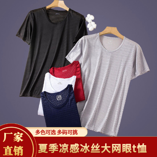 夏の氷糸tシャツ男性速乾半袖上着メッシュ男性服ゆるい半袖通気性男性スポーツウェア