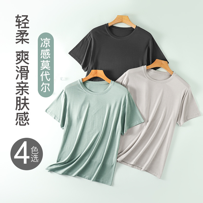 夏のメンズモーダル半袖Tシャツ薄手のワンピーストップパジャマメンズホームウェアルーズカジュアルアウターウェア