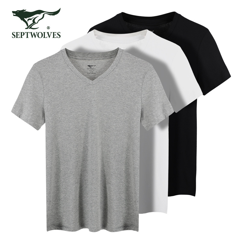 七匹狼男性半袖綿アンモニア通気vネック半袖夏薄いメンズtシャツ白いカジュアル半袖