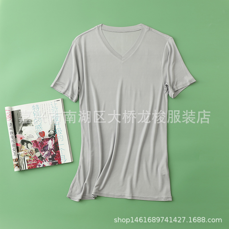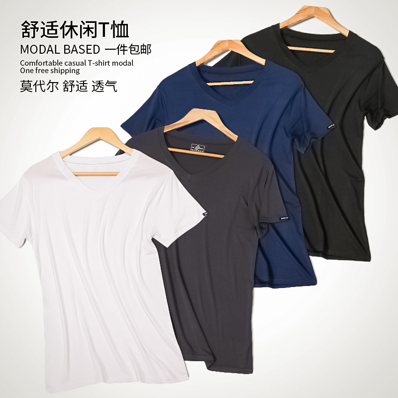 モーダル夏丸襟ガードル男性半袖vネックtシャツ純色ベストtシャツ修身運動底シャツ