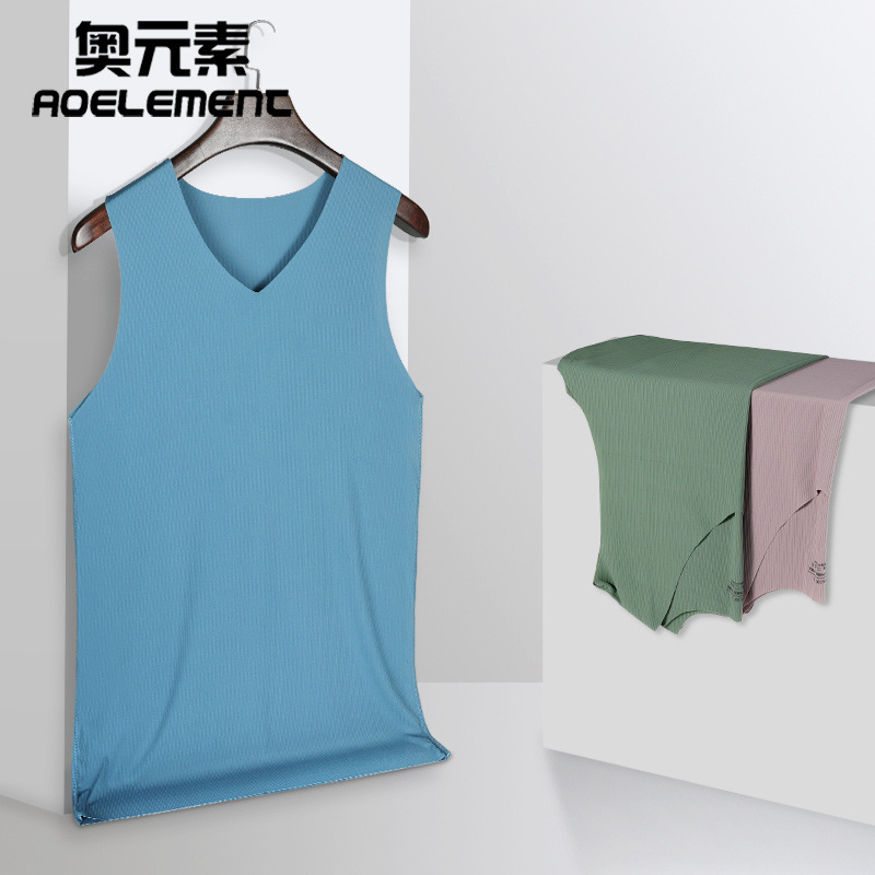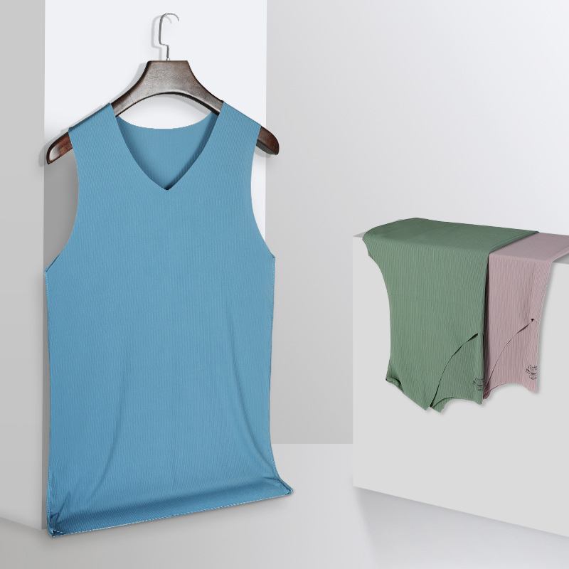男性ベスト氷糸無痕フィットネス夏ガードル通気下着青年運動ハードル袖なしシャツ