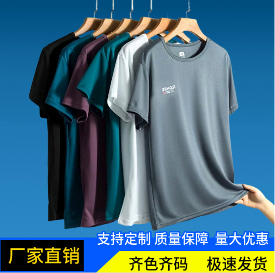 2023メーカー直販速乾薄手通気半袖ランニングフィットネスウェア夏スポット氷糸丸襟シャツ