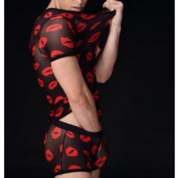メーカー卸売りmanview男性半袖tシャツセクシーファッション半透明丸首唇印男性tシャツ潮流前線