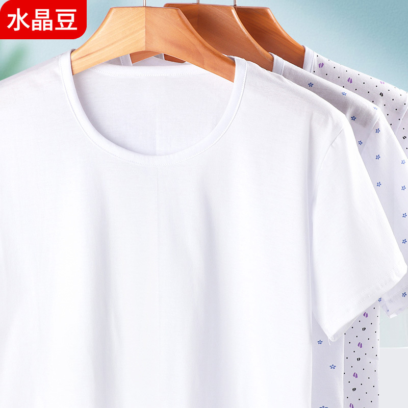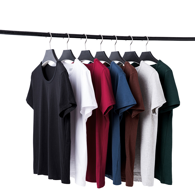 男性綿シャツtシャツ夏綿丸襟下着半袖運動修身肌着シャツ