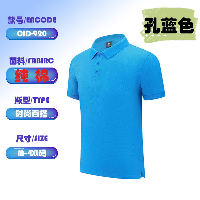 長絨毛綿半袖清涼綿ポロシャツ通気速乾鮮やか純色活動シャツ屋外団建服新商品